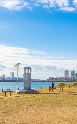 潮風を感じて開放的に歩ける海沿いエリア。信号が少なく見晴らしも良いため、愛犬とのジョギングにも最適です。特に夕暮れ時の景色は美しく、愛犬との散歩時間を特別なものにしてくれます。