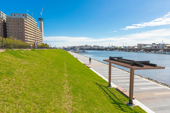 駅から少し離れると旧江戸川が流れ、広々とした水辺の景色が楽しめます。整備された河川敷はジョギングやサイクリングに適しており、スポーツや愛犬との散歩に最適です。都心近くとは思えない広い空と水辺が身近にあります。