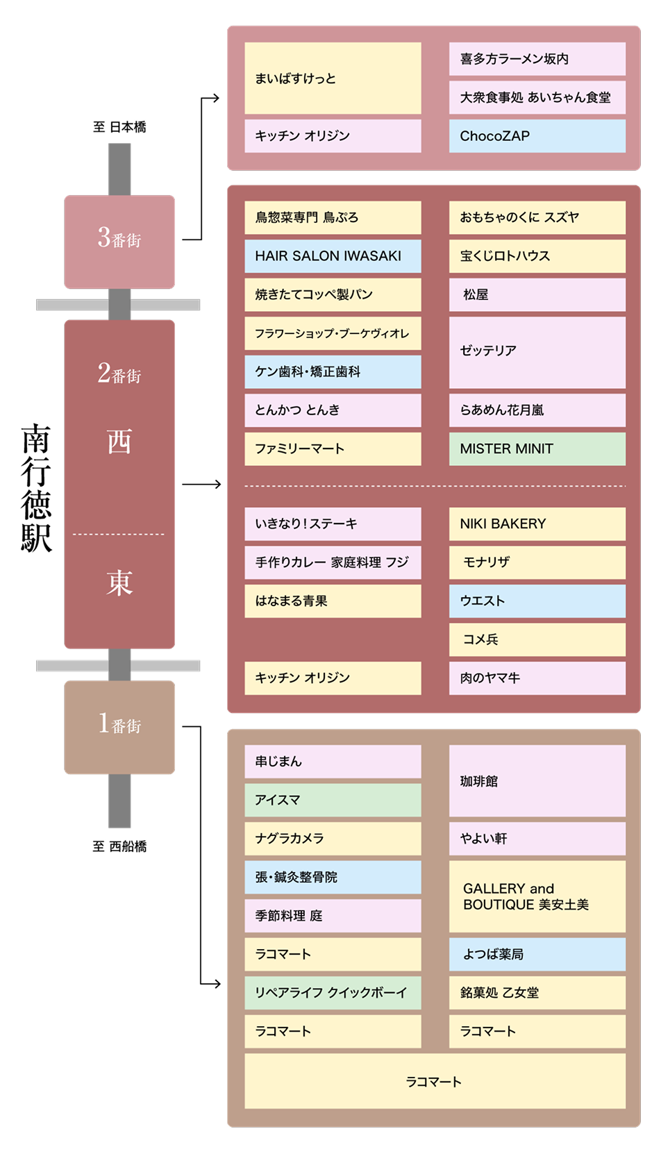 飲食店や便利なお店が多く並んでいます。